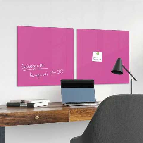 Доски стеклянные Brauberg 45х45см, розовая, 3 магнита