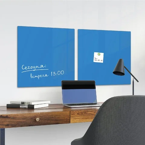Доски стеклянные Brauberg 45х45см, синяя, 3 магнита