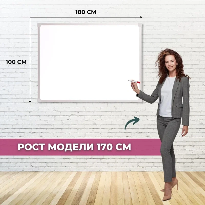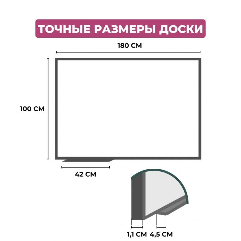 Размер рабочей поверхности доски составляет 96.5×177.8 см, а благодаря утончённой алюминиевой раме шириной 11 мм доска имеет увеличенное рабочее пространство.