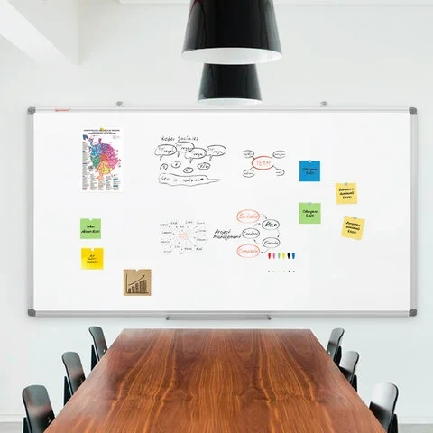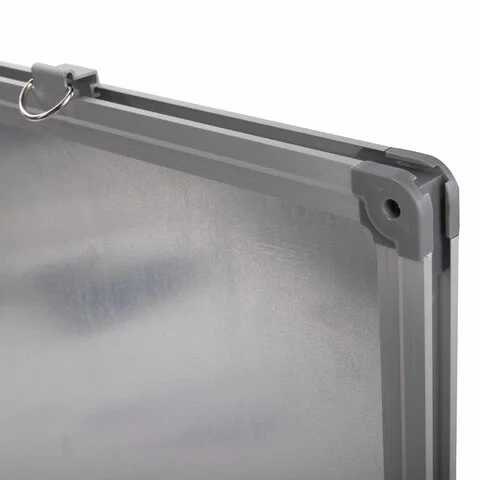 Лаковое покрытие предназначено для письма специальными маркерами для белой доски, а металлическая поверхность позволяет размещать информацию при помощи магнитов. Доска размером 120х240 см имеет укрепленные пластиковые уголки, которые позволяют скрыть места крепления к стене. Профиль придает изделию дополнительную прочность и современный стильный внешний вид. Элементы крепления входят в комплект. Для защиты рабочей поверхности доски на нее нанесена защитная пленка. Перед началом работы – удалить защитную пленку.