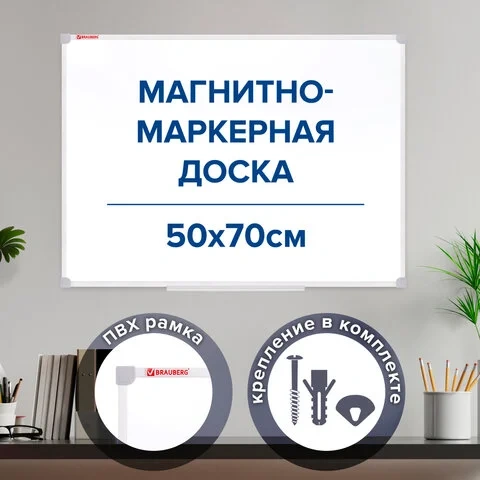 Доска магнитно-маркерная Brauberg 70х50см, белая, ПВХ рамка, 238186