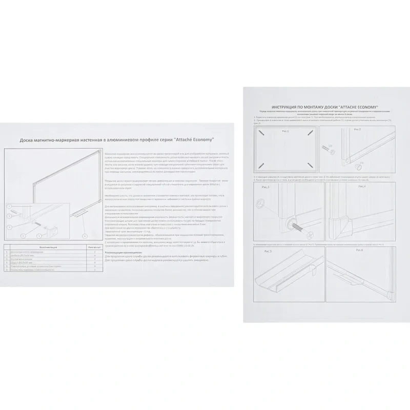 Доска магнитно-маркерная Attache Economy Ultra 90×120 см односекционная с лаковым покрытием Доска магнитно-маркерная ультратонкая Attache Economy Ultra, 90×120 см. Размер рабочей поверхности: 87×117 см. В основании доски прочный гофролист из картона с влагозащитным фольгированным покрытием тыльной стороны. Лаковое покрытие. Алюминиевая рама с пластиковыми заглушками. Магнитно-маркерная доска используется во время презентаций или для отображения материала, который нужно наглядно представить. Металлическая белая глянцевая поверхность позволяет крепить на доску важную информацию с помощью магнитов, использовать бумагу для заметок с клейким краем (стикеры) или писать специальными whiteboard маркерами сухого стирания, которые легко удаляются. Таким образом, на доске удобно размещать информацию, которая часто меняется. Эти доски используются для комфортной работы с информацией в организациях, учебных заведениях и домашних офисах. При удалении записей применяются только специальные губки-стиратели в комбинации со специализированным спреем для более тщательной очистки полотна. Для продления срока службы доски рекомендуется использовать фирменные маркеры и губки. В комплекте полка для маркеров с клейкой полосой для самостоятельного приклеивания на нижнюю рамку, набор для крепления, инструкция по установке. Расположение горизонтальное. Страна-производитель — Россия. Поставляется готовой для использования. Для удаления защитной плёнки потяните за верхний свободный угол, плёнка легко отойдёт от рабочей поверхности. При необходимости проведите вдоль рамы канцелярским ножом.