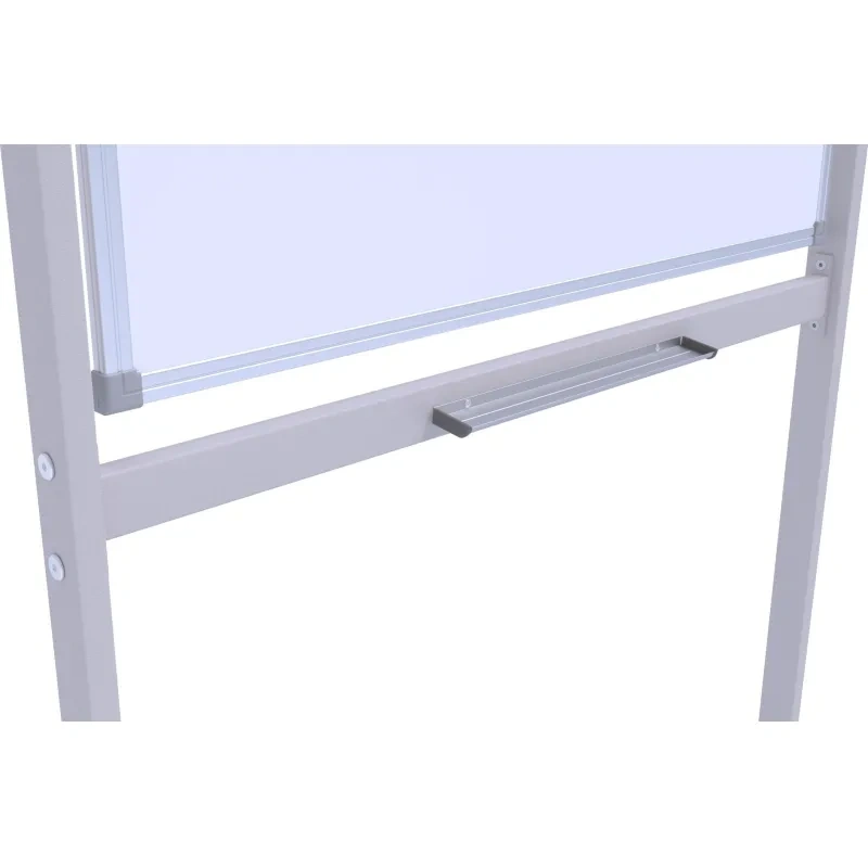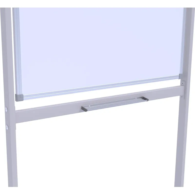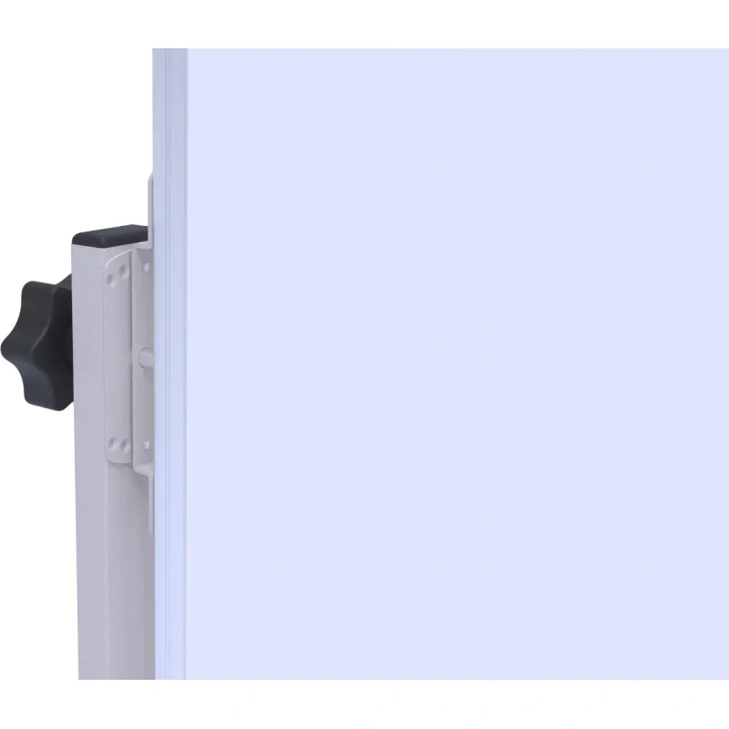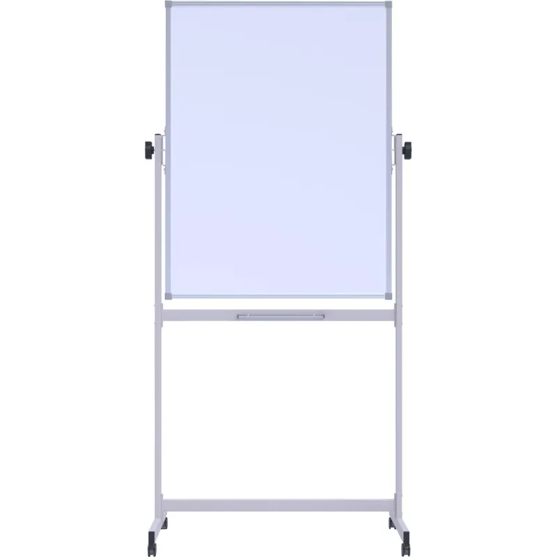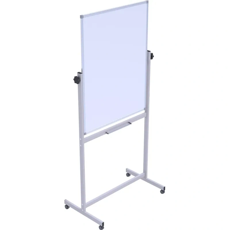 Доска магнитно-маркерная/меловая 75×100 см, поворотная, мобильная. На основу из пенополистирола толщиной 10 мм с одной стороны наклеен магнитно-маркерный лист, с другой стороны наклеен магнитно-меловой лист. Магнитно-маркерная поверхность предназначена для представления информации при помощи маркеров для белых досок. Магнитно-меловая поверхность позволяет представлять информацию с помощью мела. Обе поверхности предназначены для крепления информации на бумажных носителях при помощи магнитов. Размер рабочей поверхности: 70,5×96,2 см. Гарантийный срок эксплуатации поверхностей 2 года (не более 600 циклов стирания). Рамка доски — алюминиевый профиль, пластиковые уголки. Металлическая мобильная стойка доски изготовлена из стальной трубы 20×40 мм и окрашена порошковой краской в серый цвет. На ней расположены 4 колесика, 2 из которых со стопором. Эту модель доски можно не только перемещать по полу, но и поворачивать рабочую поверхность вокруг оси на 360 градусов, что позволяет использовать обе стороны доски. Рабочая поверхность фиксируется только в вертикальном положении при помощи резьбового прижимного элемента. Доска оснащена съемной полочкой размером 32 см для маркеров и мелков. Габаритные размеры доски: высота — 192,3 см., ширина — 81,5 см, длина планок для колесиков — 57 см. Для удаления защитной пленки потяните за верхний свободный угол, пленка легко отойдет от рабочей поверхности. При необходимости проведите вдоль рамы канцелярским ножом, подрезая пленку. Инструкция по сборке и фурнитура в комплекте. Упаковка — картонная коробка.