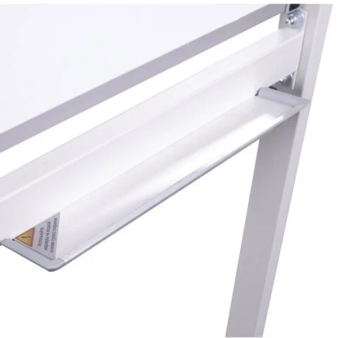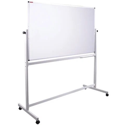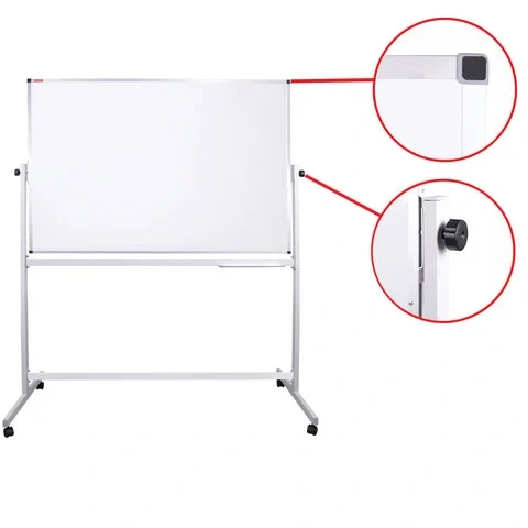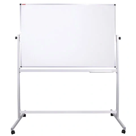 Лаковое покрытие предназначено для письма специальными маркерами для белой доски, а металлическая поверхность позволяет размещать информацию при помощи магнитов. Вращается в горизонтальной плоскости на 360°. Перемещается на колесиках. Алюминиевая рама придает доске необходимую прочность. Подставка для канцелярских принадлежностей позволяет всегда держать под рукой магниты, маркеры, стиратели и другие необходимые предметы. Элементы крепления входят в комплект. Защитная пленка предупреждает появление царапин, потертостей и сколов на рабочей поверхности доски при транспортировке и хранении продукции (перед началом работы необходимо удалить защитную плёнку). Размер: 120х180 см.