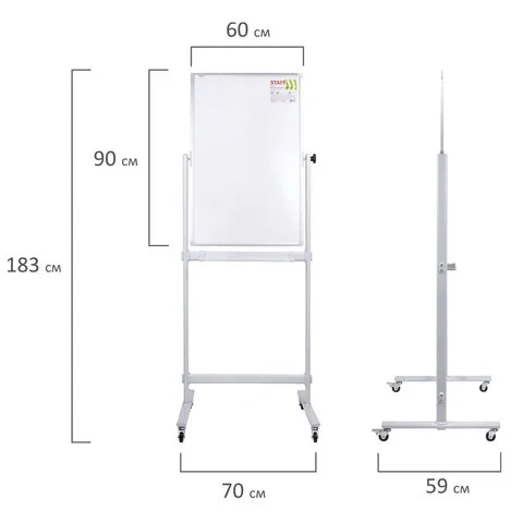 Доска магнитно-маркерная Staff мобильная 60х90см, белая, 2-сторонняя, 238013