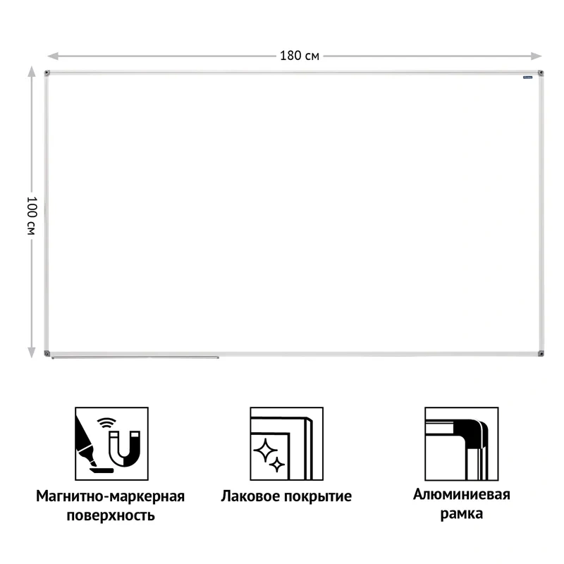 Магнитно-маркерная доска OfficeSpace идеально подойдёт для проведения тренингов, совещаний и презентаций. Размер: 1000*1800 мм. Белое лаковое покрытие предназначено для письма специальными маркерами. Металлическая поверхность позволяет размещать объявления при помощи магнитов. Алюминиевая рамка с укреплёнными пластиковыми уголками гарантирует прочность конструкции и длительный срок службы. Предусмотрена возможность как горизонтального, так и вертикального монтажа доски на поверхности. Комплектация: полочка для аксессуаров, крепежные элементы, инструкция.