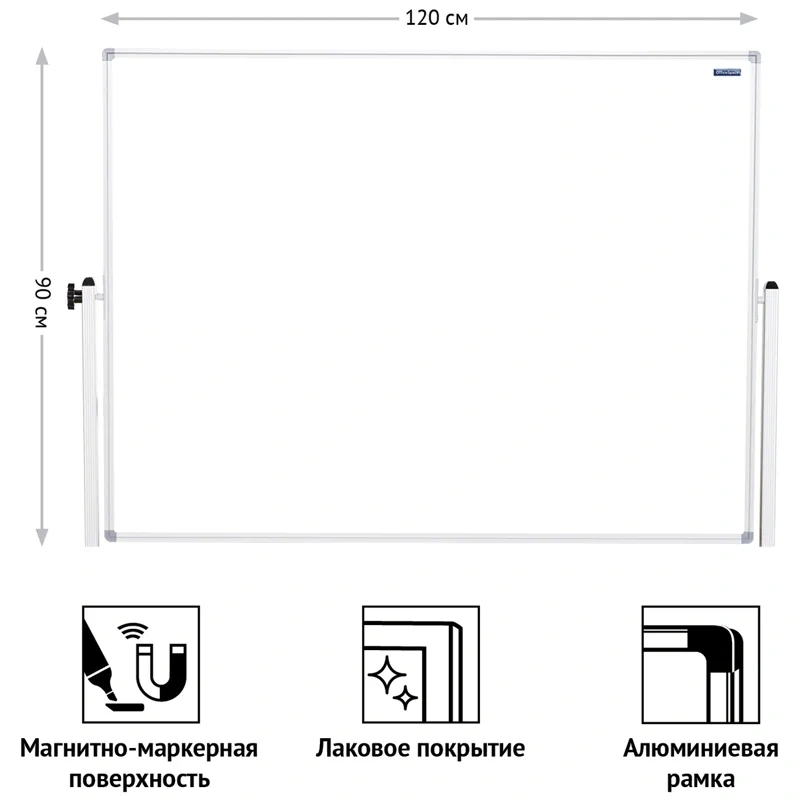 Доска магнитно-маркерная OfficeSpace, 90*120см, двустронняя, поворотная, мобильная, алюминиевый проф