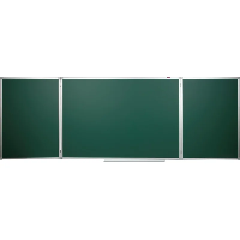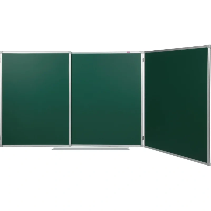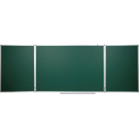 Доска магнитно-меловая Attache 100×300 см зелёная трёхсекционная. Доска имеет 2 створки — 5 рабочих поверхностей. Обратная сторона створок доски — зелёная. Размер доски в закрытом состоянии 150×100 см, размер боковых секций 100×75 см, размер доски в открытом состоянии — 300×100 см. Рама из алюминиевого анодированного профиля, скреплённого пластиковыми уголками. Предназначена для нанесения информации цветным мелом. Поверхность доски также позволяет прикреплять листы бумаги, карты и т. п. с помощью магнитов. При удалении записей используются только специальные губки-стиратели, в комбинации со специализированным спреем. В комплекте широкая полочка для мела. Скрытое крепление к стене в четырёх точках (центральная секция). Для удаления плёнки потяните за верхний свободный угол, плёнка легко отойдёт от рабочей поверхности. При необходимости проведите вдоль рамы канцелярским ножом. Страна-производитель: Россия. Гарантийный срок 12 месяцев.