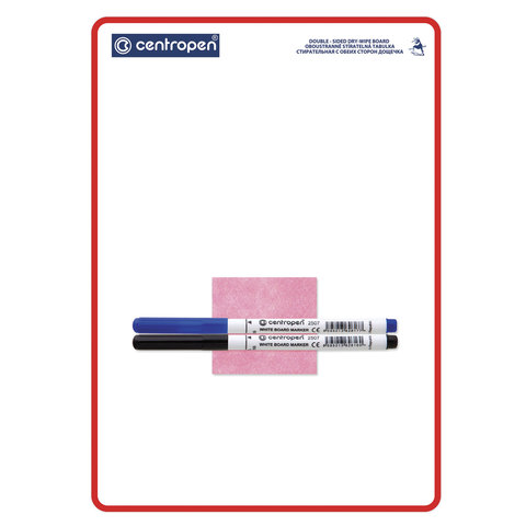 Доска маркерная Centropen 33.7х24см, белая, пластиковая, двусторонняя, в клетку, с маркером и салфет