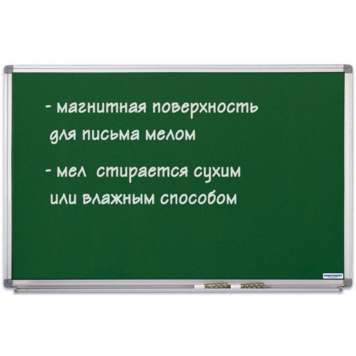 Поверхность этих досок изготовлена из прочной стали, которая позволяет писать мелом, сухо стирать или очищать специальным очистителем. К поверхности этих досок можно прикреплять фотографии, планы, карточки, заметки и т.п. с помощью магнитов.