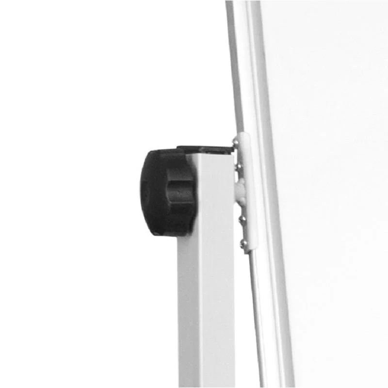 Доска комбинированная предназначена с одной стороны для письма мелом и с другой стороны для письма маркерами и размещения информации с помощью магнитов. Размер доски 100×150, вращающаяся на 360 градусов, на роликах, с лаковым покрытием. Стильная мобильная подставка на 4-х колесиках с механизмом фиксации. Простой и удобный узел фиксации позволяет установить полотно доски под произвольным углом. Стойки имеют поворотные колесные опоры, что позволяет легко перекатить доску. Комплектуется полочкой для маркеров. Для письма использовать специальные маркеры для магнитно-маркерных досок. Высота общая доски — 180 см, высота до нижнего края доски — 80 см, высота планок — 130 см. Длина планок с роликами 55 см. За счет использования премиум профиля овального сечения шириной 21 мм конструкция доски имеет увеличенную прочность и надежность. Покрытие доски имеет возможность крепления информации при помощи магнитов, при удалении записей используются только специальные губки-стиратели, в комбинации со специализированным спреем, для более тщательной очистки полотна. Гарантия 1 год. Страна производитель Россия. Для удаления пленки потяните за верхний свободный угол, пленка легко отойдет от рабочей поверхности. При необходимости проведите вдоль рамы канцелярским ножом.