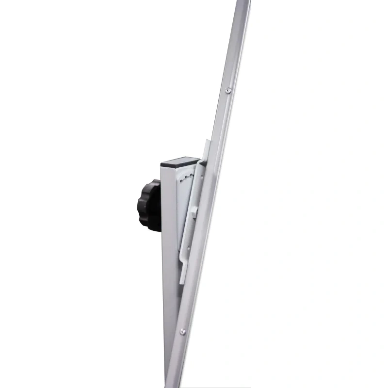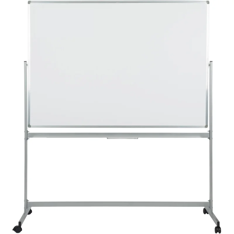 Магнитно-маркерная доска является мобильным решением для офисов и учебных заведений. Доска вращается на 360 градусов, что позволяет использовать обе её стороны для записи. Фиксация доски в нужном положении осуществляется с помощью ручки-фиксатора, который позволяет установить полотно под произвольным углом. Стойки доски оснащены поворотными колёсами, что делает её удобной для перемещения по помещению, а фиксаторы на колёсах обеспечивают надёжную блокировку.