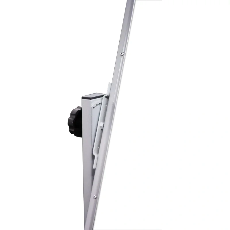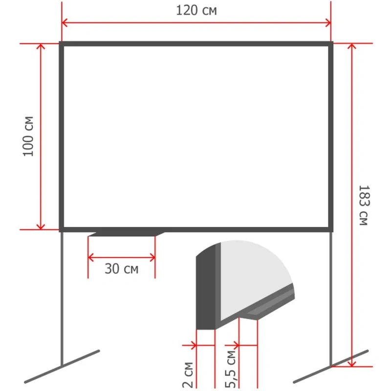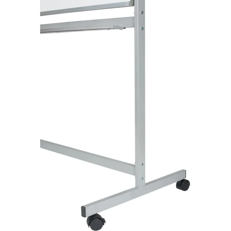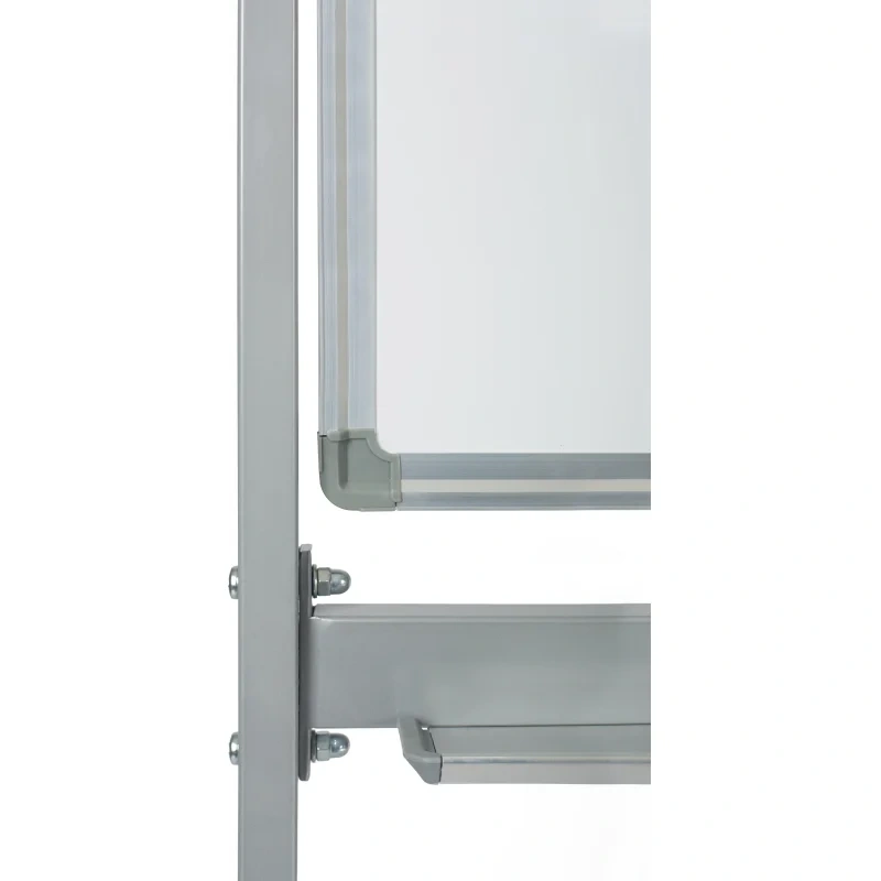 Стойка мобильная, два колеса из четырёх можно заблокировать с помощью стопора. В комплекте поставляется крепление для монтажа и полочка для маркеров. Доска оснащена магнитно-маркерной поверхностью, что позволяет использовать маркеры для письма и прикреплять информацию с помощью магнитов. Для удаления записей следует использовать специальные губки-стиратели и чистящий спрей.