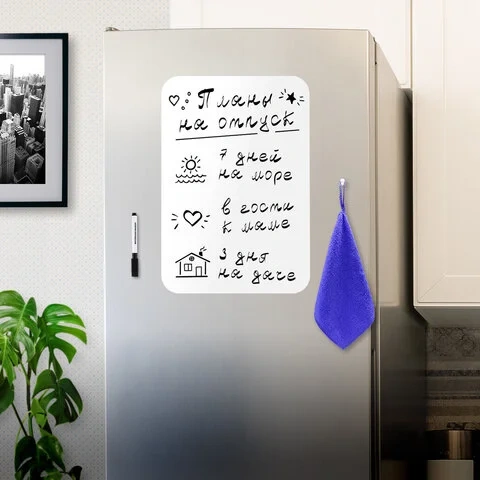 Доска на холодильник магнитно-маркерная 42х30 см с маркером, магнитом и салфеткой, BRAUBERG, 237847