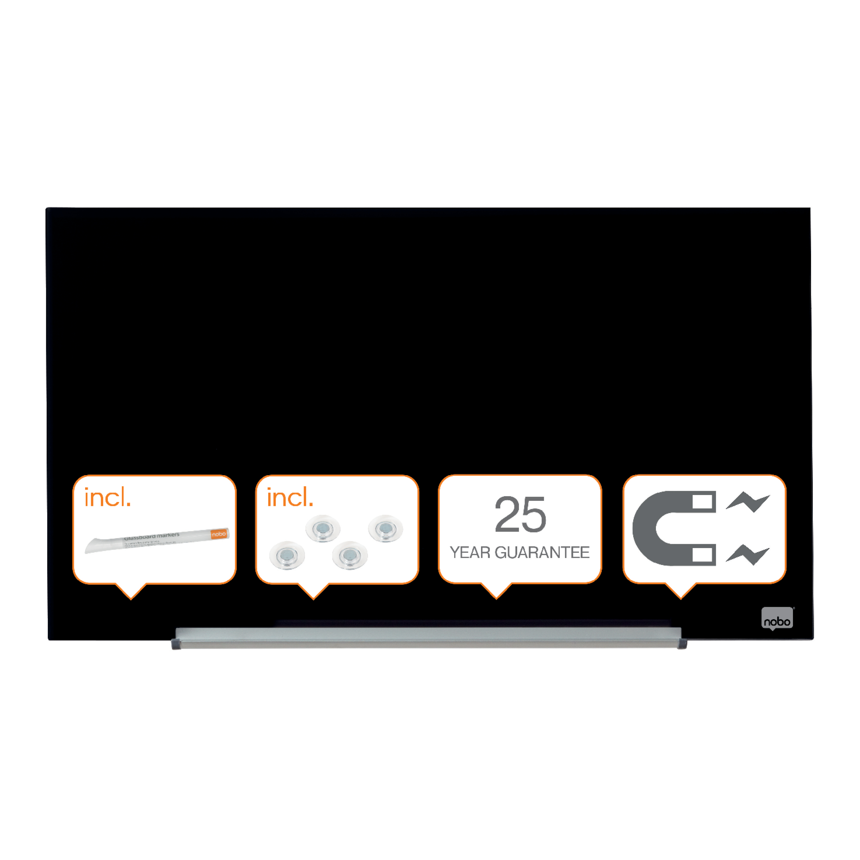 Доступны в размерах 31', 45', 57', 85' Широкоформатные доски обеспечивают увеличенную рабочую поверхность и более удобный формат для письма, по сравнению с обычными стеклянными досками, где пространство сверху и снизу практически не используется Стильный безрамочный дизайн увеличивает полезную поверхность стеклянной доски Система InvisaMount делает крепление доски простым и удобным, а крепежные элементы скрывает сама доска Магнитная поверхность из закаленного стекла обладает отличной стираемостью и устойчива к появлению царапин, следов от маркеров и пятен Поставляется в комплекте с маркером сухого стирания Nobo и набором усиленных магнитов Nobo для стеклянных досок Nobo рекомендует ежемесячно очищать стеклянную доску для лучшей производительности 25 лет гарантии
