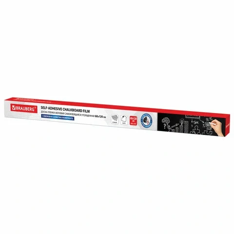 Доска-пленка меловая самоклеящаяся в рулоне, черная, 60х120 см, 5 мелков и салфетка, BRAUBERG, 23783