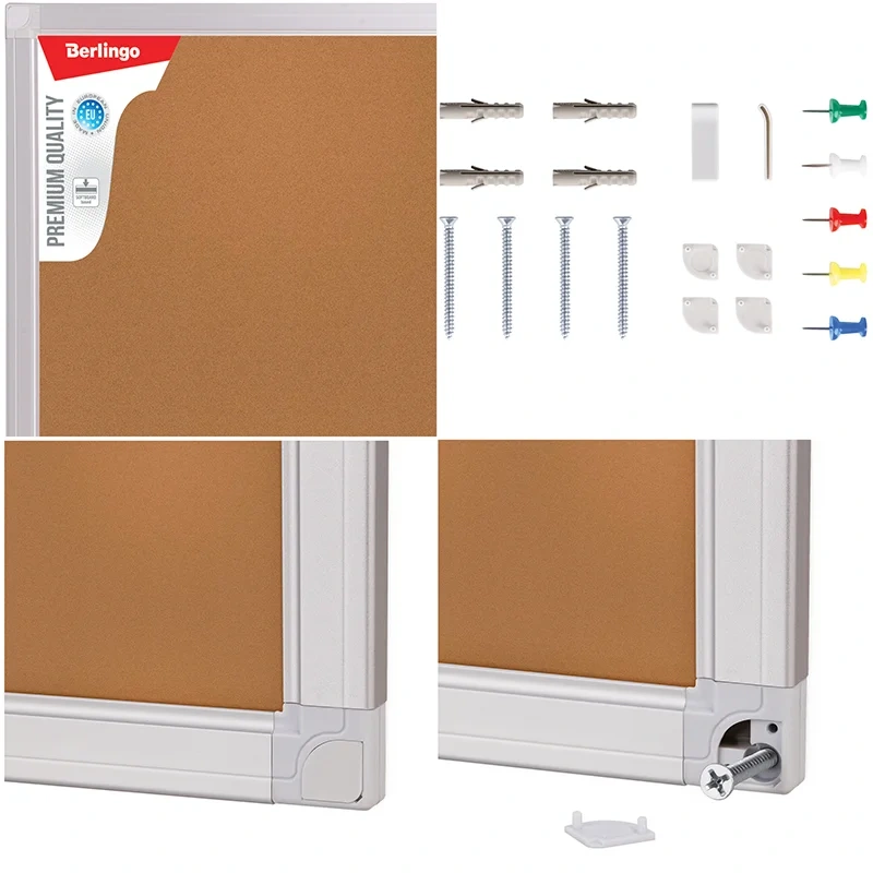 Доска пробковая с качественным покрытием, в элегантной рамке из алюминиевого профиля. Изготовлены c использованием наполнителя Softboard, что придает дополнительную прочность в процессе перевозки и хранения, а также износостойкость в процессе эксплуатации. Предназначены для размещения информационных материалов с помощью силовых кнопок. В комплект поставки входит набор креплений и силовые кнопки.