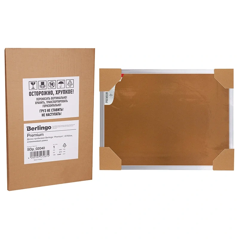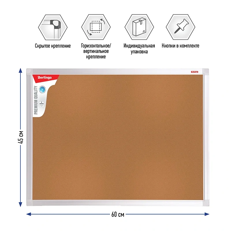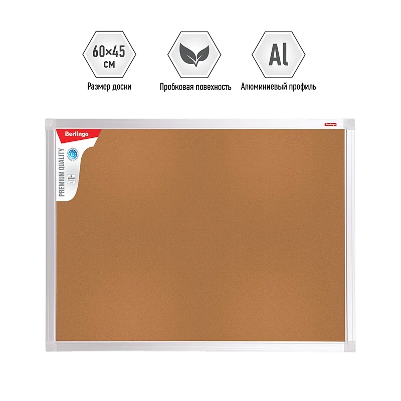 Доска пробковая Berlingo Premium 45х60см, коричневая, алюминиевая рама