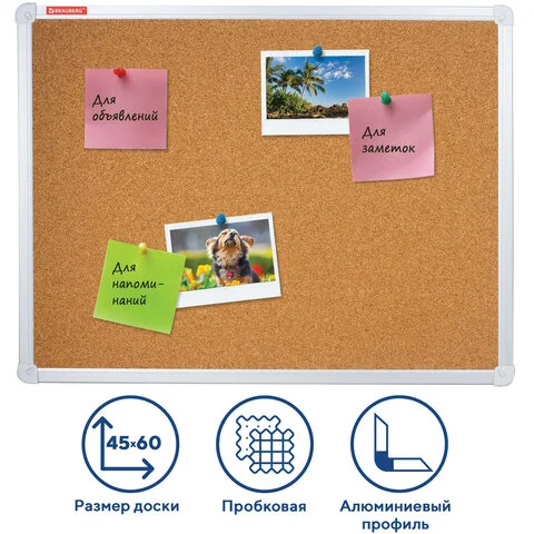 Доска пробковая Brauberg 231711 45х60см, коричневая, алюминиевая рама