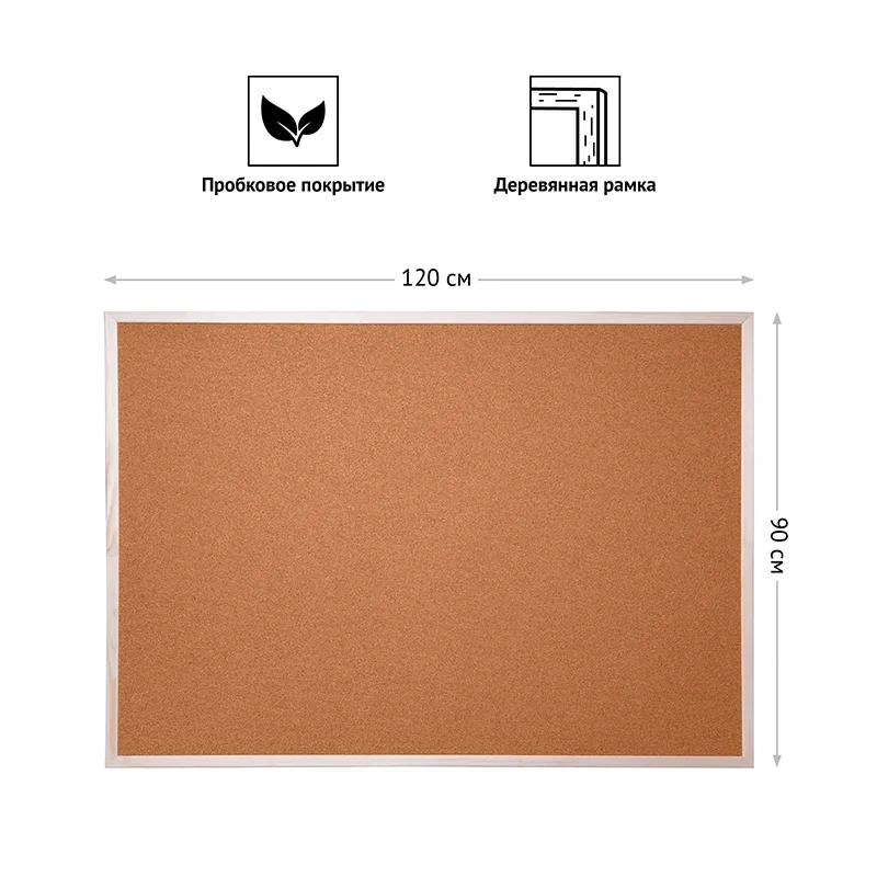 Доска пробковая Officespace 120х90см, коричневая, деревянная рама
