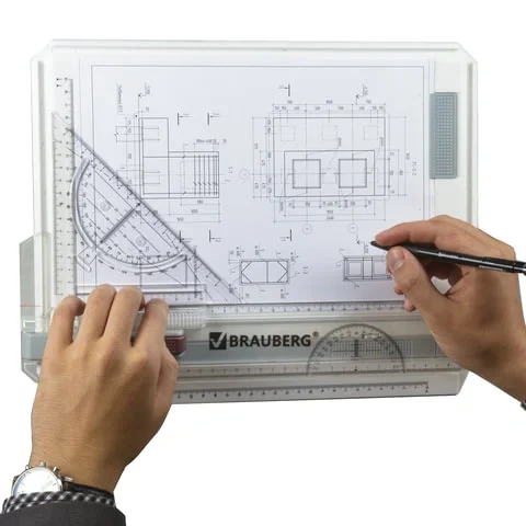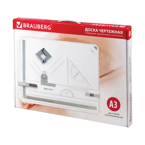 Доска чертежная Brauberg А3, с рейсшиной, треугольником и чертежным узлом