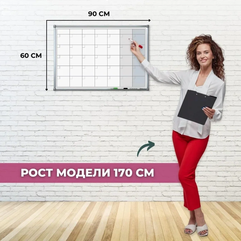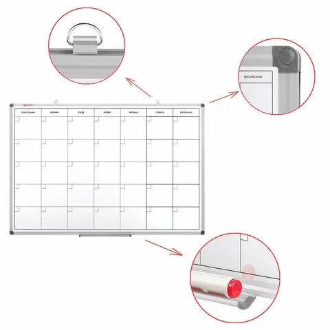 Доска-планинг НА МЕСЯЦ магнитно-маркерная 60х90 см, алюминиевая рамка, BRAUBERG 'Extra', 237564