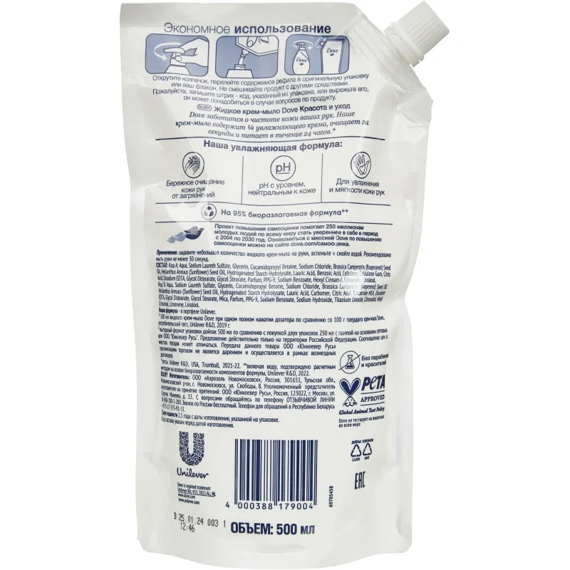 Жидкое мыло наливное Dove Красота и уход, 500мл