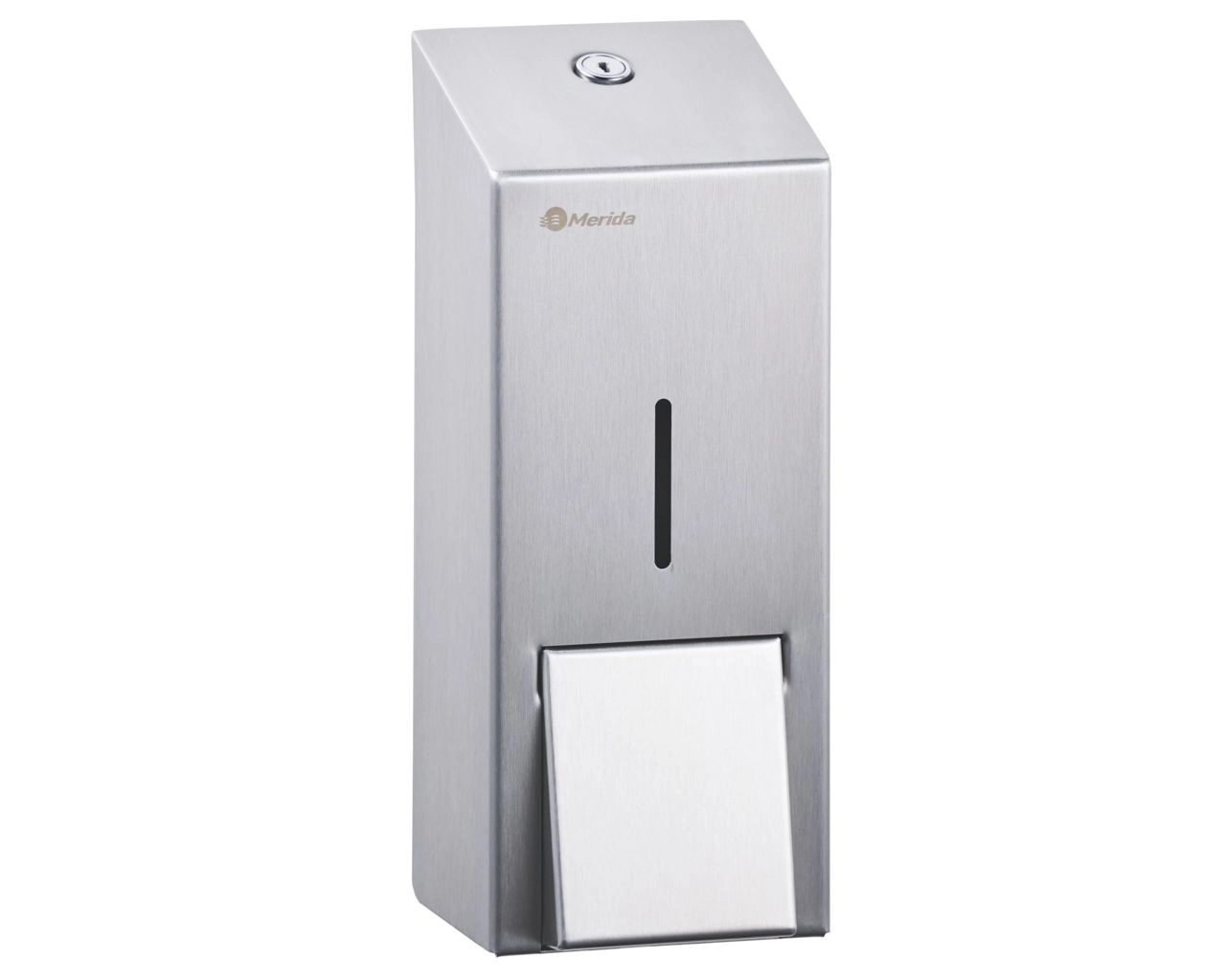Картриджный дозатор мыльной пены линии оборудования Merida Stella R изготовлен из матовой нержавеющей стали AISI 304 толщиной 1 мм. Мыло-пена дозируется по 0,4гг после нажатия клавиши на дозаторе. Снабжен прочным стальным барабанным замком заподлицо с поверхностью устройства, сварные соединения боковых стенок зашлифованы, образуя гладкую поверхность. Имеет удобное окошко для контроля наличия расходных материалов. Устойчив к коррозии – идеальное решение для ванной или туалетной комнаты. Его достоинствами являются прочный корпус, защита от ржавчины и долговечность использования за счет применяемого материала, современный лаконичный дизайн, а также крепкое настенное крепление и наличие прочного стального замка заподлицо с поверхностью устройства. Идеальное сочетание стиля и надежности. Рекомендации по уходу за поверхностью диспенсера: Очиститель - полироль Polex арт. 133305. Восстанавливающее средство - Metasoft NBS024. Тряпки для нанесения химии - SRL300