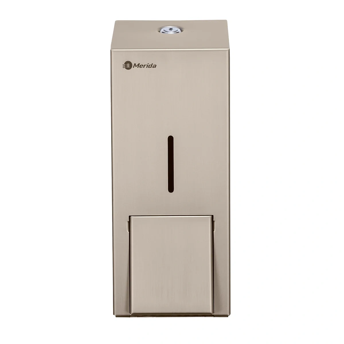 Механический картриджный дозатор мыльной пены металлический 'MERIDA STELLA R' (Anti Finger) Механический картриджный дозатор мыльной пены 'MERIDA STELLA R' с покрытием Anti Finger представляет собой надежное и функциональное устройство, предназначенное для общественных и коммерческих пространств. Изготовленный из нержавеющей стали, этот дозатор обеспечивает долговечность и простоту в использовании, а специальное покрытие минимизирует видимость отпечатков пальцев и загрязнений. Преимущества: Корпус из нержавеющей стали с покрытием Anti Finger, что делает его устойчивым к загрязнениям. Российское производство. Механический механизм, обеспечивающий высокую надежность. Современный дизайн, который вписывается в любой интерьер. Корпус из нержавеющей стали AISI 304 толщиной 1 мм обеспечивает долговечность и прочность. Технические характеристики: Тип: Картриджный Материал: Нержавеющая сталь Цвет: Anti Finger Вместимость: 700 мл Тип расходного материала: Картриджное мыло-пена Merida в ассортименте Уход: Для регулярной гигиены поверхности диспенсера используйте очиститель-полироль CEMO. Нанесите средство на протирочную салфетку CM002 и аккуратно протрите поверхность для поддержания чистоты и сохранения внешнего вида.