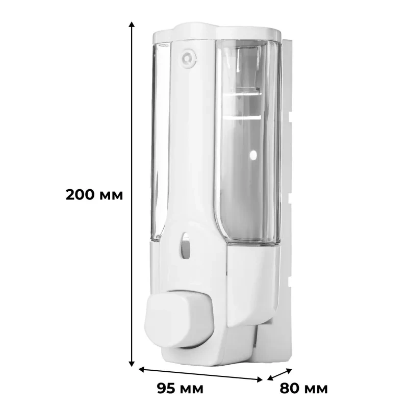 Особенности: Дозатор для жидкого мыла M-1628 изготовлен из высококачественного пластика белого цвета. Идеально подходит для любых туалетных комнат. Гигиеничное и экономичное решение. Надежная система подачи мыла исключает протекание. Габаритные размеры: 200×95×80 мм.