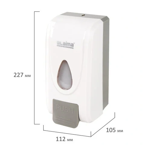 Корпус изготовлен из ударопрочного пластика ABS. Выдача мыла осуществляется экономичными порциями. Диспенсер сочетается с расходными материалами других производителей. Имеется окно для контроля уровня мыла. В комплект входят крепежные материалы. Тип – наливной. Объем – 1 л.
