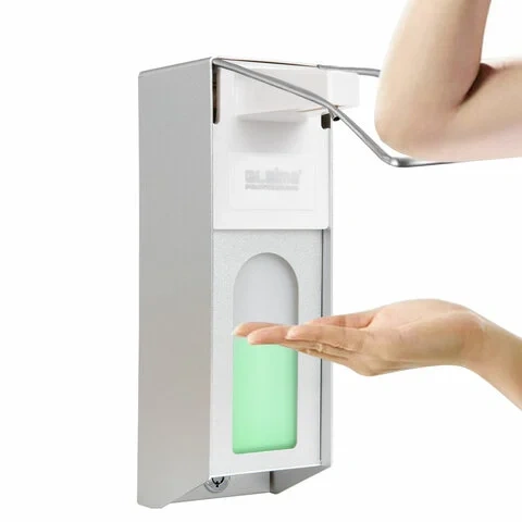 Дозатор локтевой для жидкого мыла и геля-антисептика, с еврофлаконом 1 л, LAIMA, металлический, с за