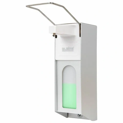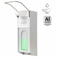 Антивандальный наливной дозатор из алюминия объемом 1 л обеспечивает высокую гигиеничность. Механизм дозирования при помощи локтевого привода позволяет избежать контакта рук с поверхностью диспенсера. Выдача мыла/антисептика осуществляется экономичными порциями. Диспенсер сочетается с расходными материалами других производителей. В комплект входят еврофлакон и крепежные элементы. Диспенсер оборудован замком с ключом.