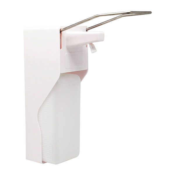 Локтевой дозатор подходит для жидкого мыла, дезинфицирующих и асептических средств.