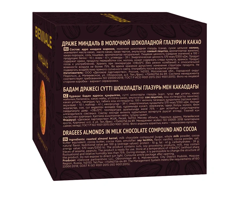 Драже Biennale миндаль в молочной шоколадной глазури и какао, 100г