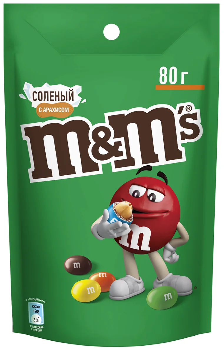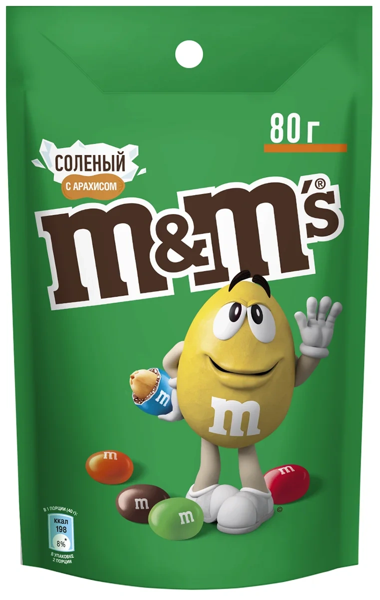 Восхитительно вкусный жареный арахис с солью, покрытый аппетитным молочным шоколадом и красочной хрустящей глазурью. - Немного арахиса + много вкуса = безудержное веселье. Берите на любой праздник пару пачек вкусного угощения M&M's с арахисом в молочном шоколаде! - Размер порции идеален для того, чтобы в полной мере насладиться отдыхом после долгого дня. - Вы всегда можете поделиться M&M's с друзьями! - Пачка M&M’s идеально подойдет как для просмотра кино или сериала, так и для того, чтобы взять с собой в дорогу и не ждать весь день, а получить удовольствие даже от утренней поездки на работу. - Возьмите одну из упаковок в офис и порадуйте себя и коллег! - Попробуйте добавить M&M’s в ваши любимые десерты, чтобы удивить родных и близких или просто побаловать себя.
