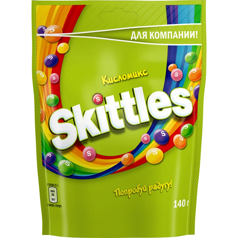 Skittles Кисломикс - потрясающе кислые драже с хрустящей оболочкой, жевательной серединой и радугой терпких фруктовых вкусов. Кисломикс - это возможность поделиться сладостью с друзьями, семьей или коллегами по работе. Возьмите драже Skittles в дорогу или пополните свои домашние или офисные запасы сладостей. Идеально подходит для вечеринок по случаю дня рождения, больших посиделок с друзьями или за просмотром хорошего фильма. Skittles наполнит вас радугой кислых вкусов: ананас, малина, яблоко, мандарин и вишня. Не бывает двух одинаковых радуг, как и двух одинаковых пачек Skittles, поэтому каждый раз наслаждайтесь вкусным и необычным сочетанием. Попробуйте добавить Skittles в ваши любимые десерты, чтобы удивить родных и близких или просто побаловать себя.