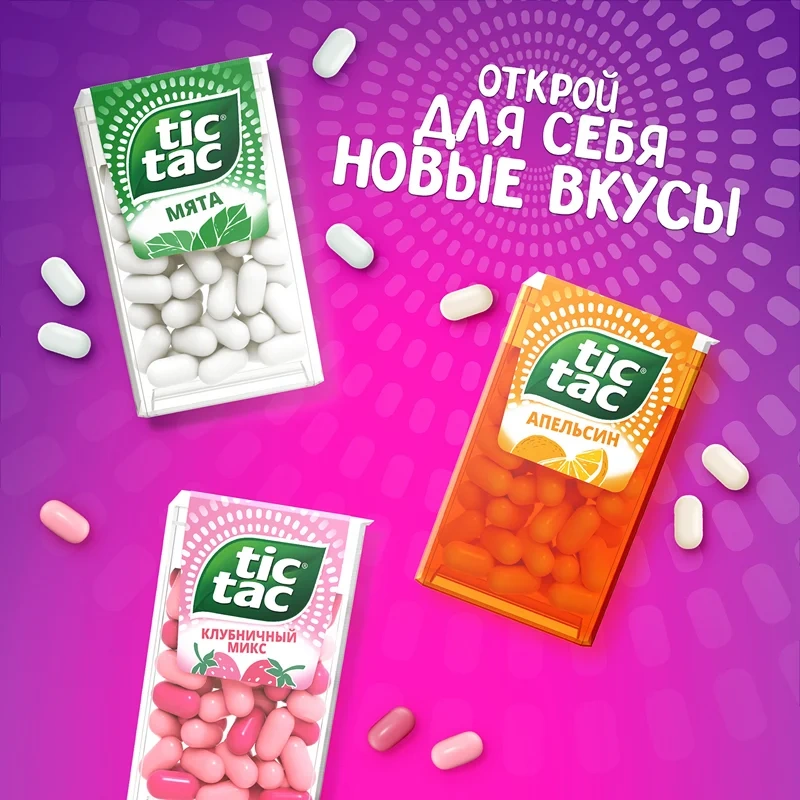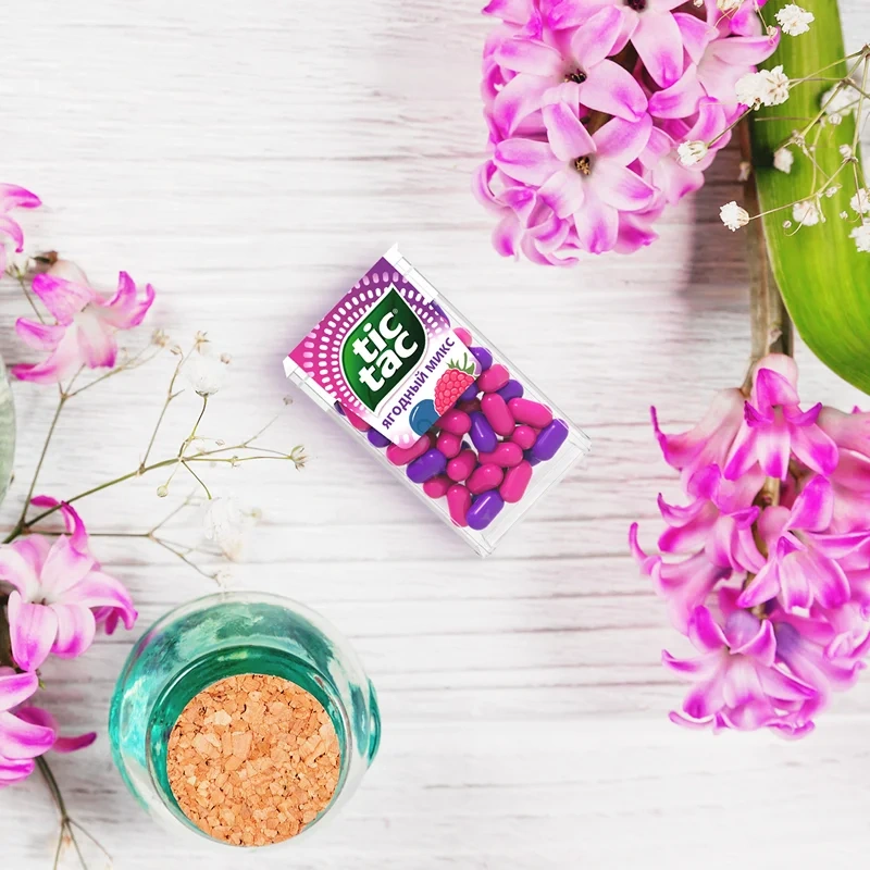 Драже Tic Tac ягодный микс, 16г представляют собой оригинальные драже ярких оттенков, которые могут прийтись по душе как взрослым, так и детям. Они отличаются насыщенным, ярко выраженным вкусом и приятным ароматом. Не содержат пальмового масла. Угощение дарит позитивное настроение, заряд энергии и сил. Под тонкой оболочкой сладости скрываются уникальные вкусы. Драже может выступать в качестве эффектного украшения тортов, пирожных, панкейков и других кондитерских изделий. Удобный формат позволяет без труда делиться лакомством с родными и близкими. Выпускается в пластиковом контейнере с крышкой защелкой, который не займет много места в кармане брюк, сумке или рюкзаке. Благодаря этому ее можно брать с собой на работу, учебу или в дорогу, чтобы насладиться приятной свежестью в любое время.