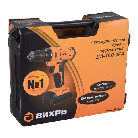 Дрель-шуруповерт аккумуляторная Вихрь ДА-18Л-2КА 18В, 2 аккуммулятора, 1.5Ач