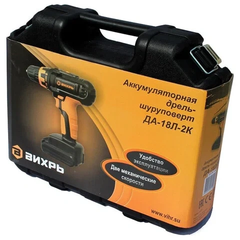 Дрель-шуруповерт аккумуляторная Вихрь ДА-18Л-2К 72/1 18В, 2 аккуммулятора, 2Ач