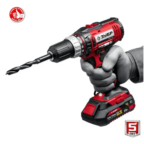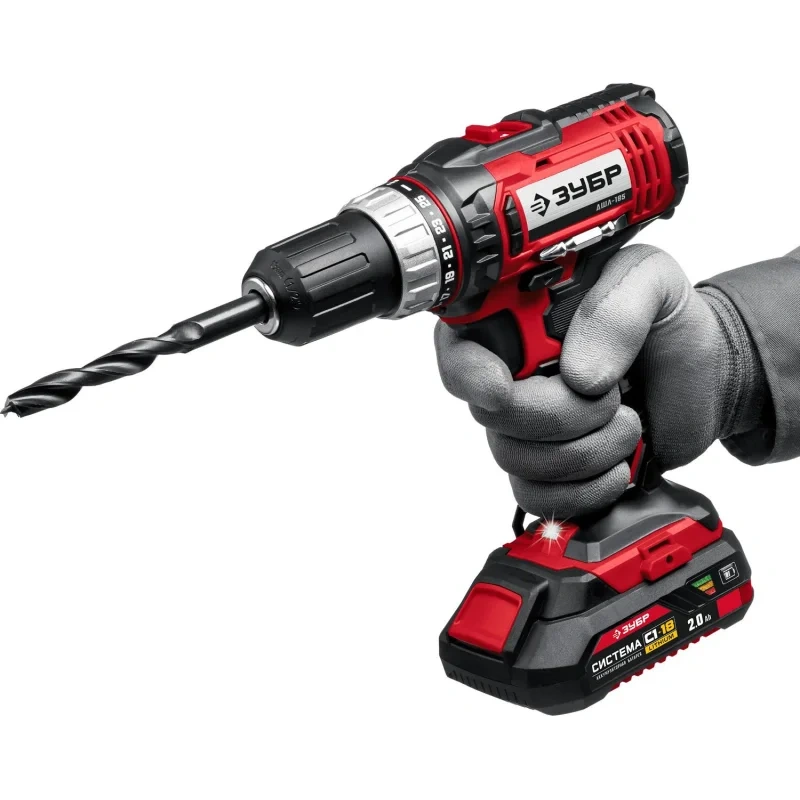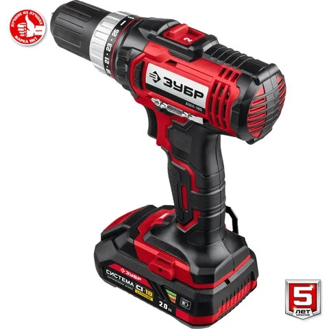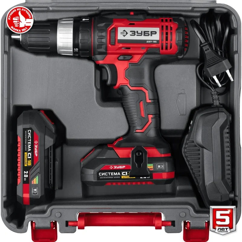 Дрель-шуруповерт аккумуляторная Зубр ДШЛ-185-22 18В, 2 аккуммулятора, 2Ач
