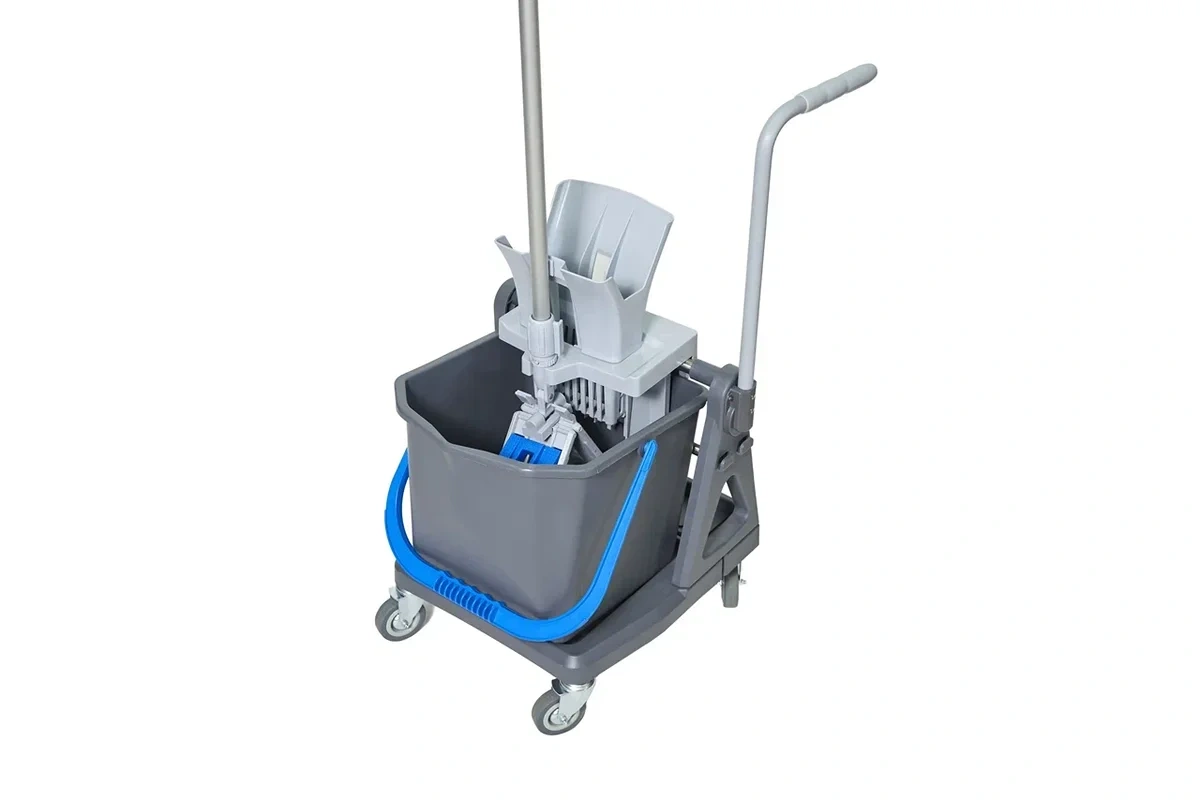 В комплект входит: ведро 25л, ведро 8 л, ведро 6 л, туннельный отжим, транспортировочная ручка.
