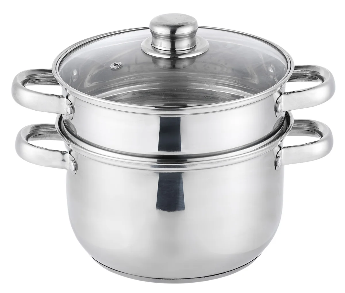 Кастрюля-пароварка изготовлена из долговечной и надежной нержавеющей стали (ss201). Толщина корпуса и пароварки составляет 0,4 мм, капсулированное дно выполнено из слоев алюминия и стали: 0,5 мм алюминий, 1 мм сталь, 0,5 мм алюминий.