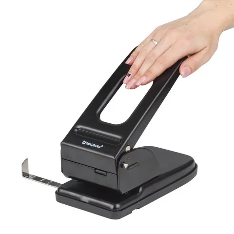 Дырокол Brauberg 'Heavy duty' – это необходимый офисный предмет, с помощью которого можно аккуратно пробивать отверстия в бумаге и затем подшивать документы в папку. Предназначен для перфорации большого объема бумажных листов.