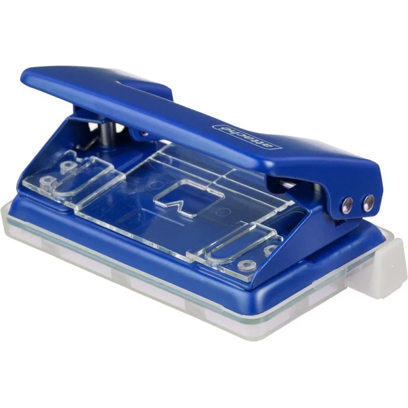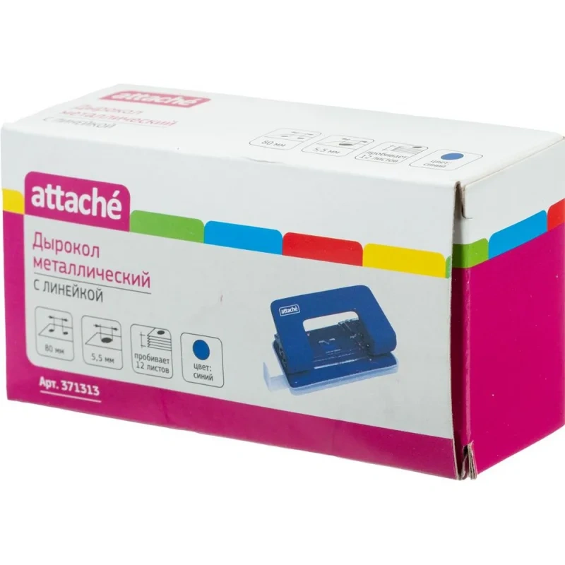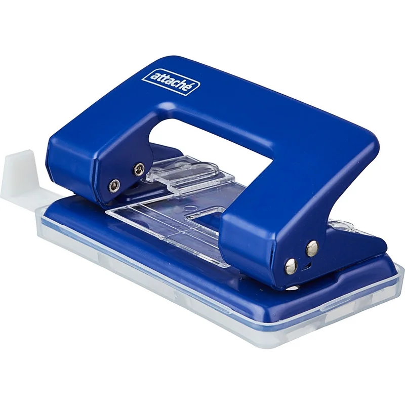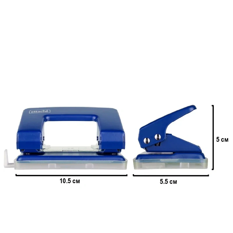 Дырокол Attache — это важный и необходимый предмет для комфортной работы в офисе и дома. Дырокол позволяет сделать отверстия в документах и подшить их в папку с двумя и четырьмя кольцами или в скоросшиватель. Корпус дырокола классического дизайна и выполнен из высококачественного металла синего цвета. Работает с документами толщиной до 12 листов плотностью 80 г/кв.м. Дырокол пробивает два отверстия диаметром 5.5 мм, расстояние между отверстиями — 80 мм. Пробойники дырокола изготовлены из высококачественного металла, что позволит им прослужить дыроколу долго и без сложностей пробивать листы бумаги. Удобный контейнер для конфетти легко открывается и закрывается, исключая его рассыпание. Наличие линейки позволяет зафиксировать бумагу на нужном расстоянии и пробить отвестия в бумаге разного формата: А4, А6, А5. Имеет метку центрирования.