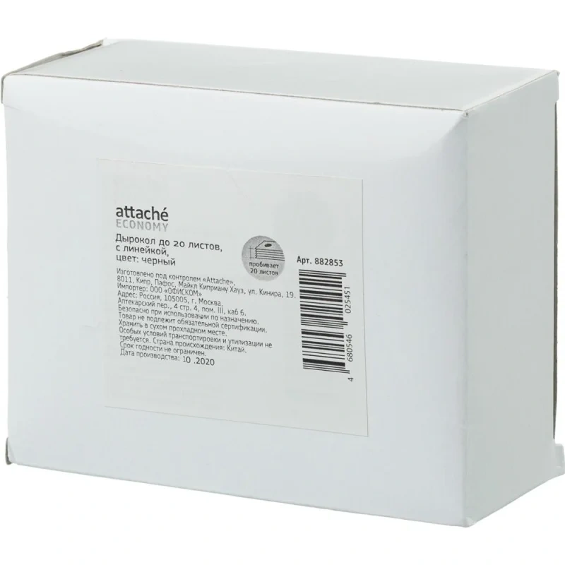 Дырокол Attache Economy до 20 листов, черный, с линейкой