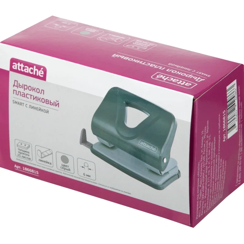 Дырокол Attache Smart до 25 листов, линейка, пластик, серый
