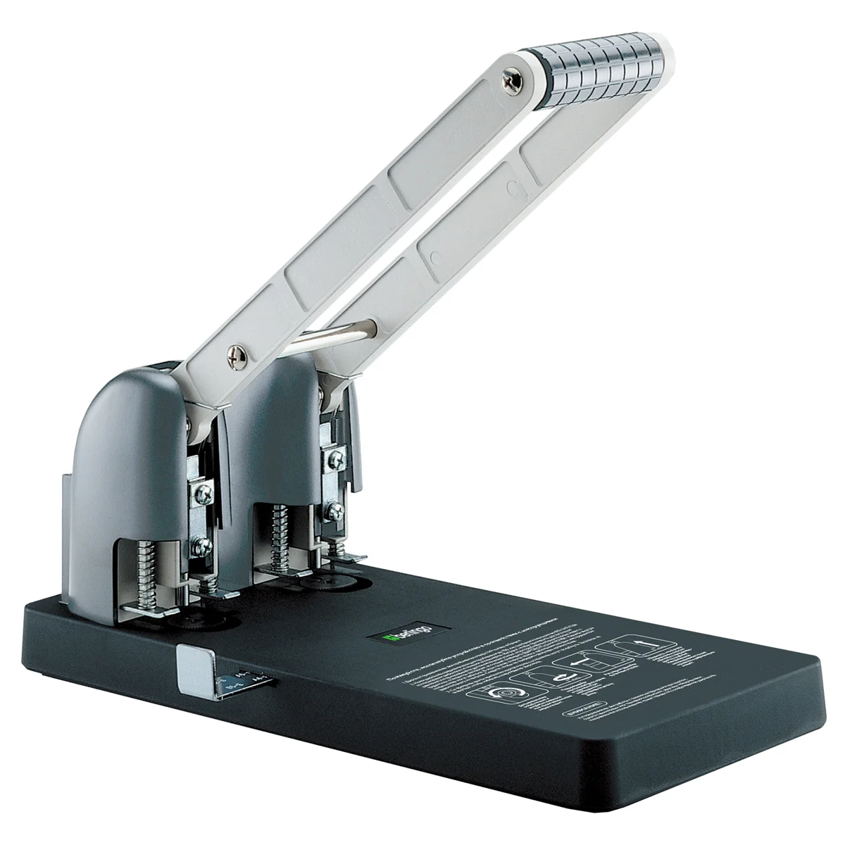 Супермощный дырокол Berlingo 'Heavy Duty' пробивает до 150 листов за раз. Дырокол делает 2 отверстия и снабжен линейкой для настройки форматов бумаги. Ручка в виде рычага позволяет пробивать большое количество листов с минимальными усилиями. Дырокол снабжен пластиковым поддоном для бумажных отходов.