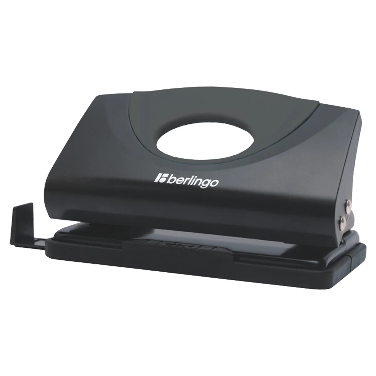 Дырокол Berlingo Office Soft до 10 листов, черный, пластиковый, с линейкой