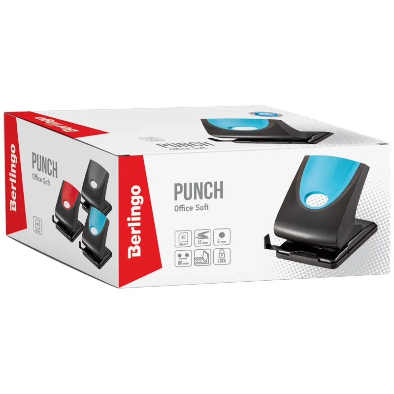Дырокол Berlingo Office Soft до 40 листов, ассорти, с линейкой